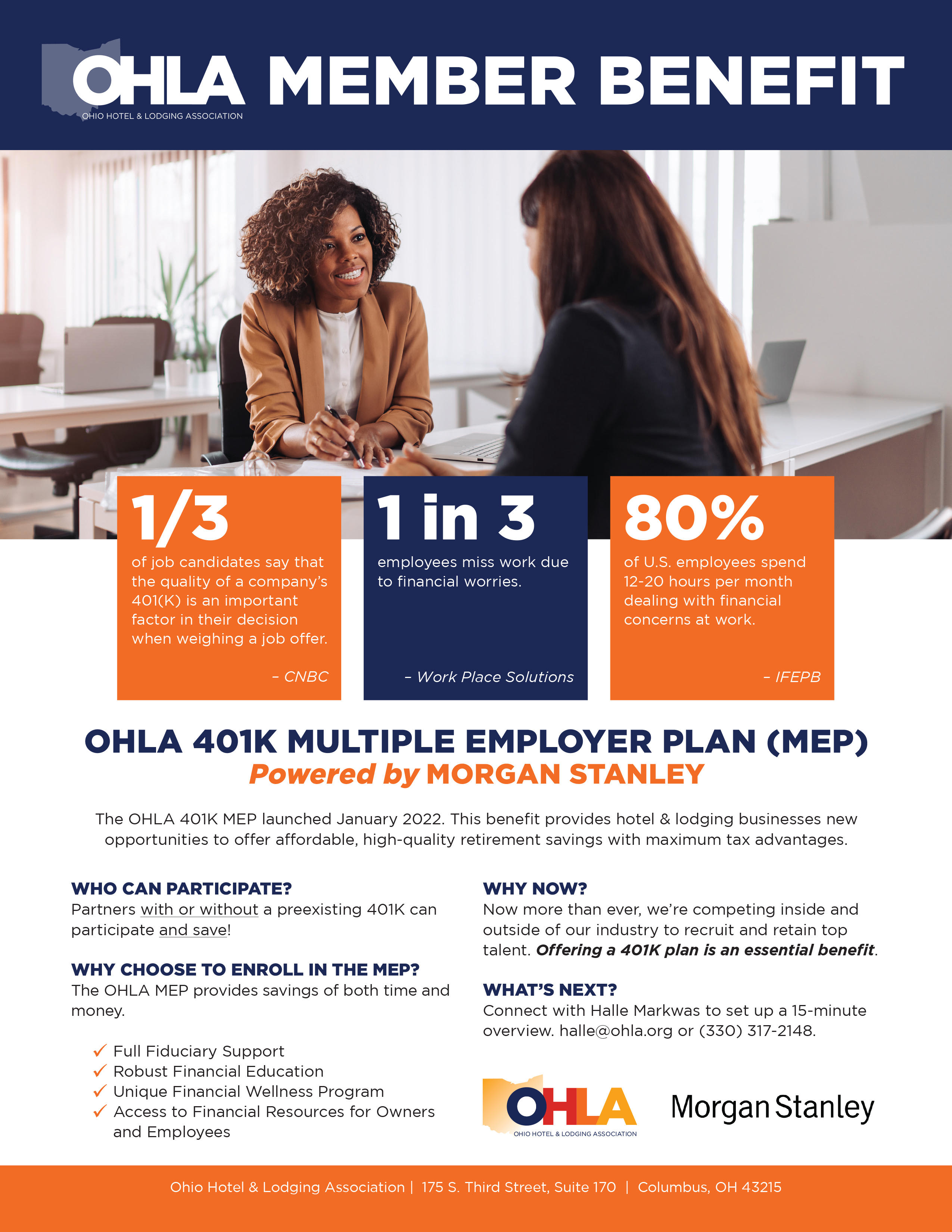 The OHLA 401K MEP launched January 2022. This benefit provides hotel & lodging businesses new opportunities to offer affordable, high-quality retirement savings, with maximum tax advantages.