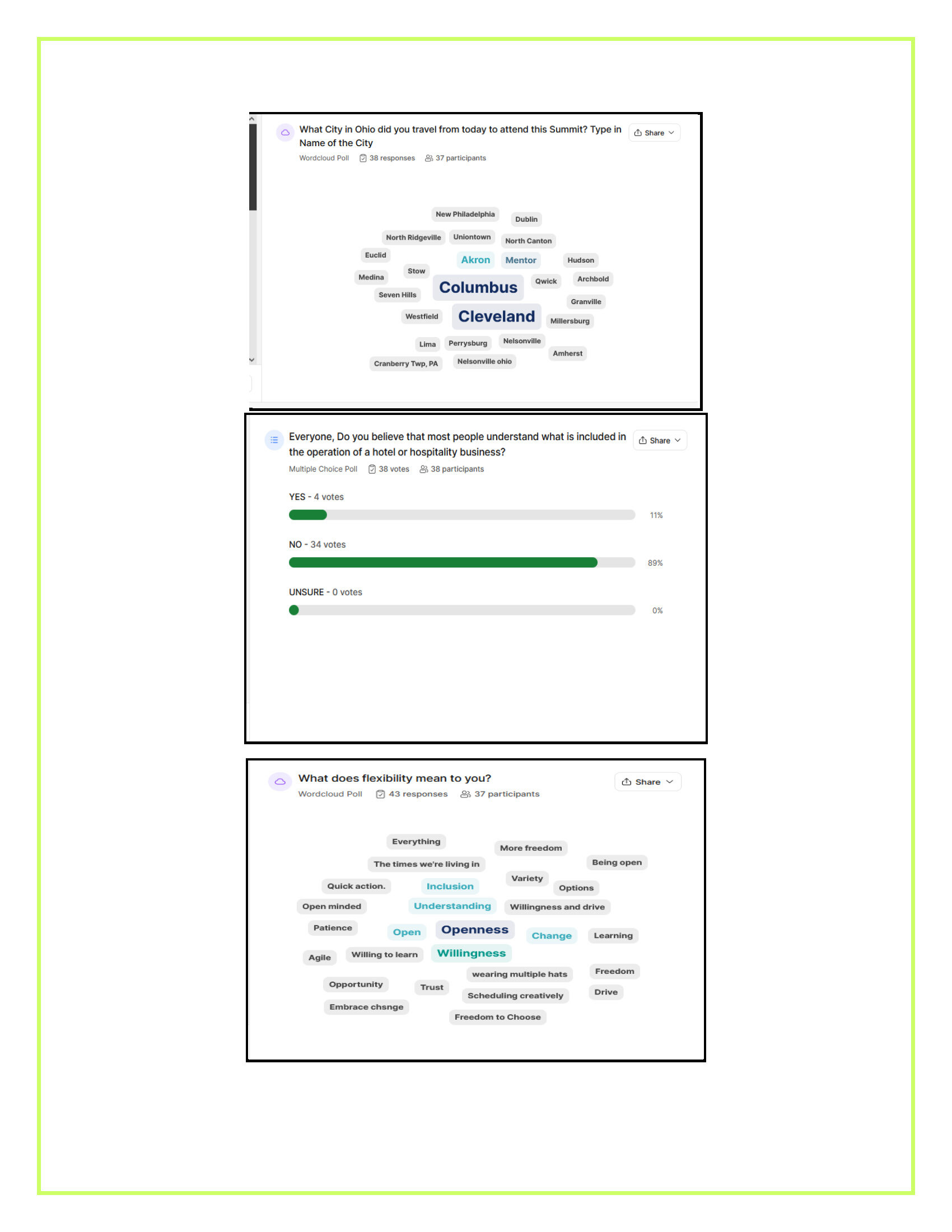 The 2023 Future of Lodging Summit included three interactive work sessions for attendees: